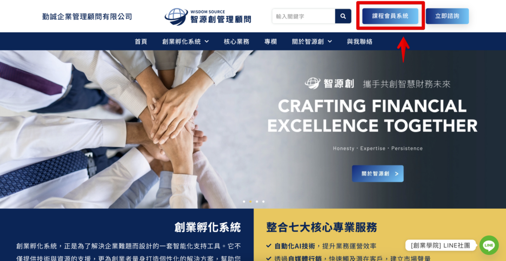 網站右上角找到【課程會員系統】(手機在選單內能找到)。