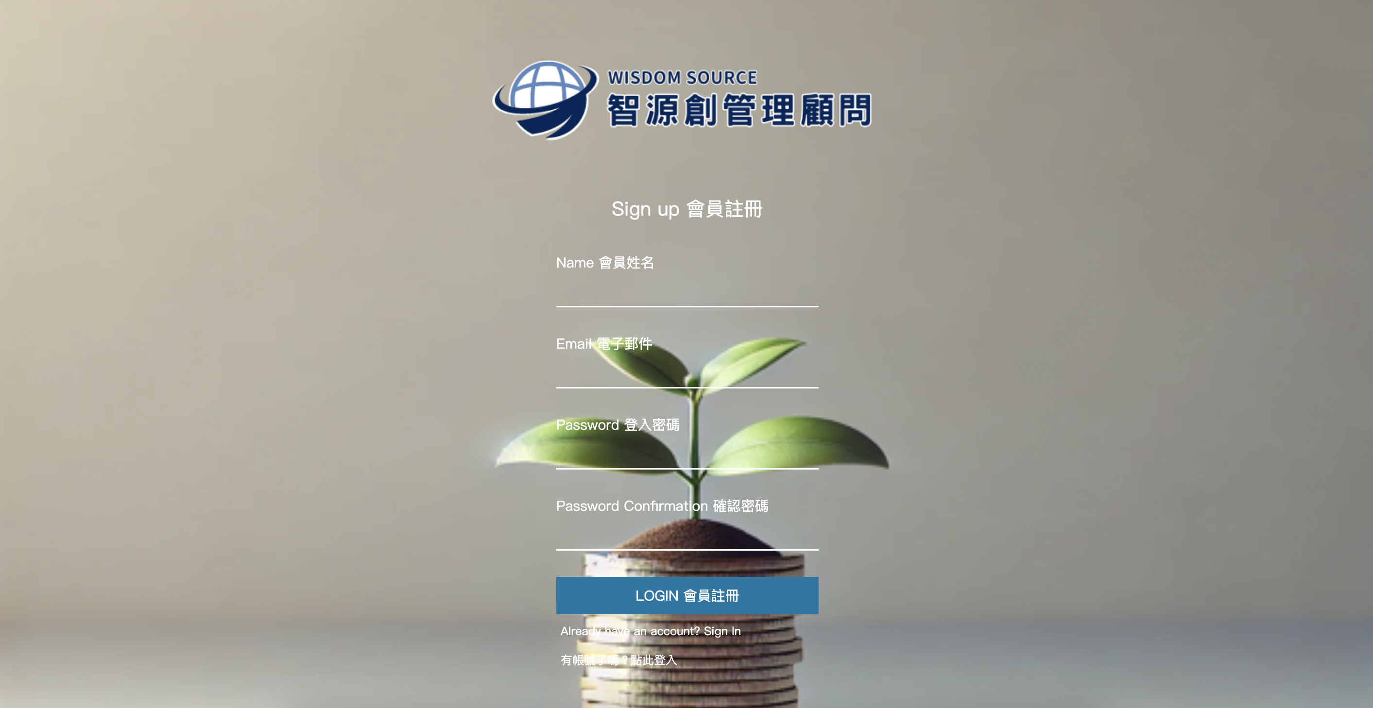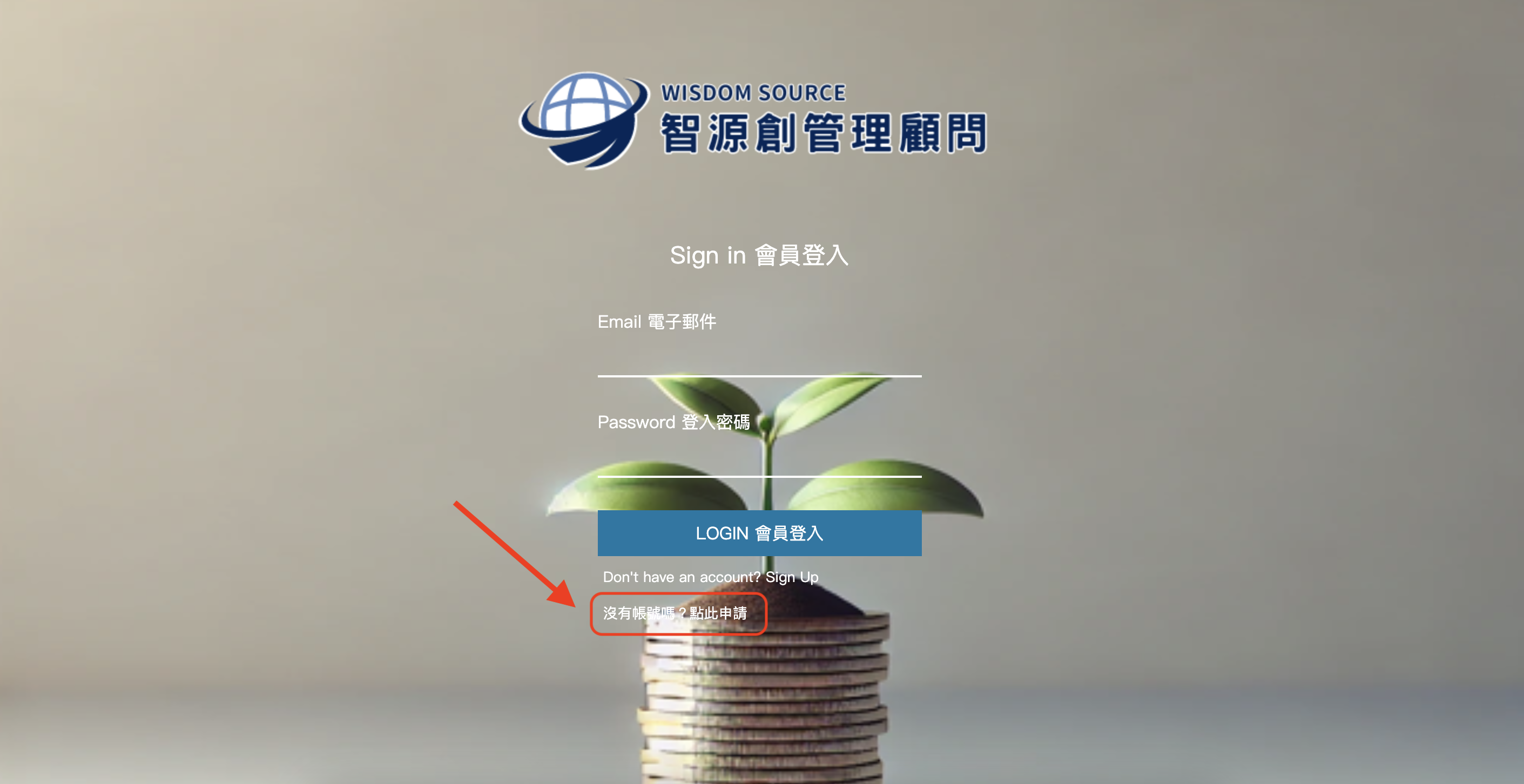 進入網站後,若還未註冊,請點選下方的『沒有帳號嗎?點此申請』,將資料填寫完整。